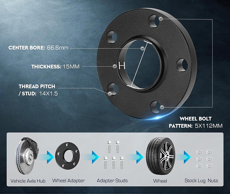 Gli adattatori per distanziali ruota Mercedes vengono utilizzati principalmente per aumentare la larghezza della carreggiata, consentendo agli pneumatici di adattarsi meglio alla carrozzeria del veicolo, migliorando così la manovrabilità, la stabilità e l'aspetto estetico.