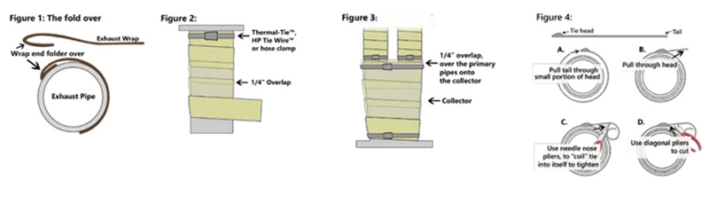 4. Crea un avvolgimento iniziale completo attorno al tubo, a filo con flangia o bordo del tubo. Continua a avvolgere attorno al tubo ad un angolo alla fine funzionando con una sovrapposizione di 1/4 "dell'involucro. Mantieni la tensione sull'involucro mentre lo sbalzi attorno ai tubi. Avvolgi il tubo intorno al tubo intorno al tubo da 3 a quattro volte in più e quindi fissate sulla flangia con Termal-Tie ™, HP TIE FILE ™ o CLAMP del tubo (Figura 2) (Figura 2)